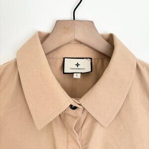 Tuckernuck tan linen and cotton blend button down vest with 2 pockets in front. This could be worn so manny different ways with pants, skirts or over a dress. Such a classic timeless piece for your wardrobe. Size Large