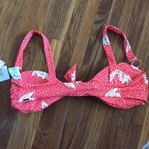 NWT O’Neill Nicolette tie front orange polka dot bikini top Mediterranean sz L