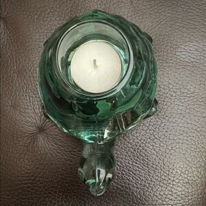 Vintage Green Turtle Votive Indiana Glass Candle Holder