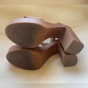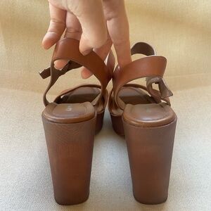 Gianni Bini Palmeera Wood Platform Block Heels 9.5 in Cara Luggage