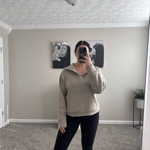 White hoodie with black mesh “Under Armour” text. Hoodie is slightly cropped.