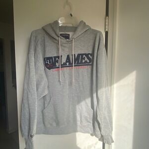 Keywords: Jansport Hoodie, Liberty University, Flames Sweatshirt, Gray Hoodie, Men's Hoodie, University Apparel, College Sweatshirt, Graphic Hoodie, Pullover Hoodie, Casual Wear, Comfortable Hoodie, Campus Style, Game Day Apparel