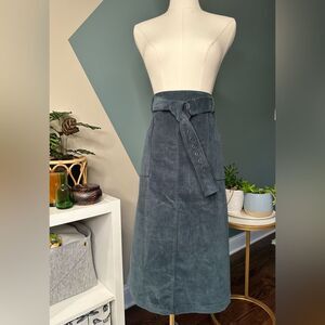 Laurèl Teal Corduroy Midi Skirt with Belt, Pockets, High Waist, Size 77 (US M/L)
