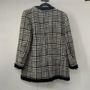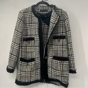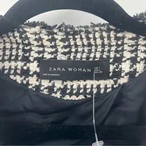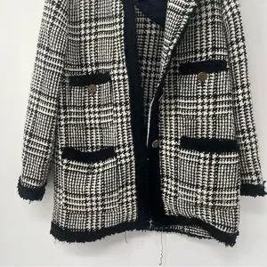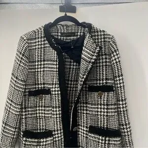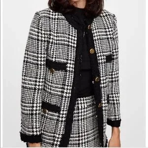 Zara Tweed Black And White Blazer academia gold buttons old money classy