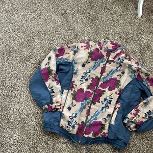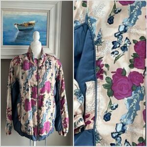 Vintage 90s Hunt Club Silk Floral Windbreaker Zipper Jacket Medium