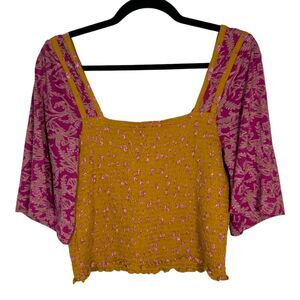 Free People Marigold Smocked Square Neck Golden Combo Size Large