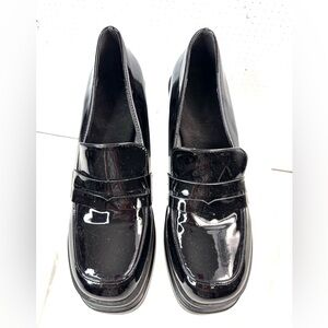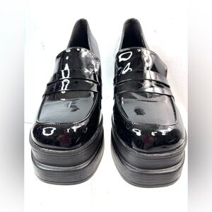 Beautiful 9 Patent Chunk Heel Lug Sole Platform Shoes in Black