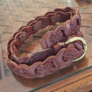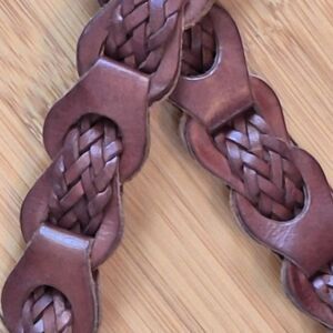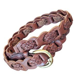 Vintage Classic Aimee Lynn Large Leather Belt Woven Braided Antique Brown 90's