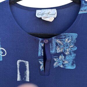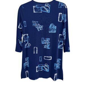 Carolyn Strauss Collection Womens Blue Patterned 3/4 Sleeve Stretch Tunic Top M