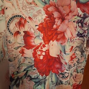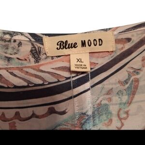 Blue Mood Floral Asymmetrical Hem Longer Tunic Ladies XL Boho Hippie Roses