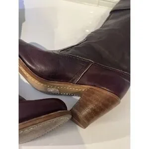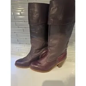 Vintage Dexter High Burgundy Leather Heeled 5 1/2M Boho Cuffed Boots