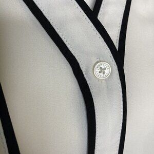 Express The Portofino Shirt Medium Ivory Black Piping Button Up Blouse Top