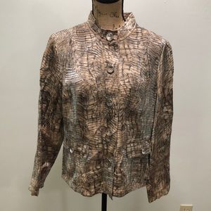 {Chico's} Mock Neck Textured Faux Snakeskin Button Down Jacket