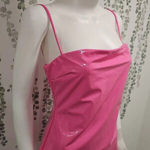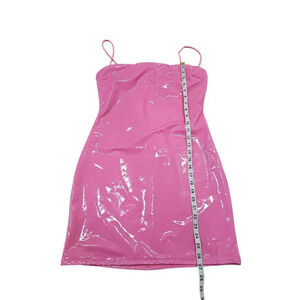 NWOT Naked Wardrobe Pink Vinyl Mini Dress Sz XL.Adjustable straps and zip closure