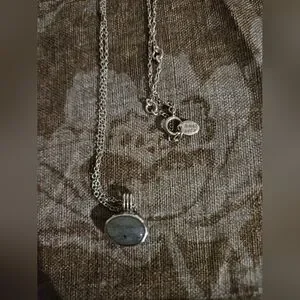 Elegant silver pendant necklace with blue labradorite, 18 inch