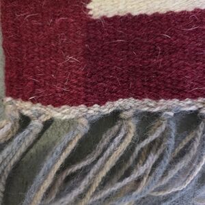 This handmade red bricks Kilim wool rug features a unique double-frame design with fringe, measuring 52" x 26". Made from 100% wool, this area rug is perfect for teens, adults, and kids to add a touch of color and style to any room. The intricate multicolor design adds a touch of traditional elegance to your home decor.