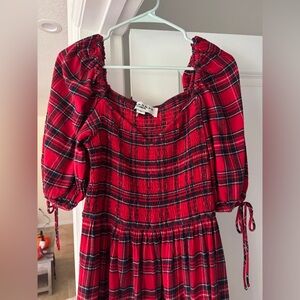 JessaKae Clara Red Plaid 3-tiered Smocked Midi Dress