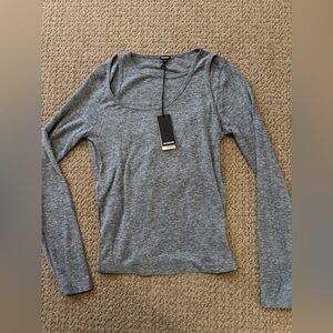 Elegant black dress with long sheer sleeves. Features a wrap design and ruffled hem. Perfect for evening wear.