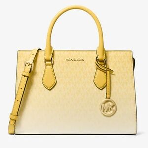 Brand new with tags Michael Kors Sheila bag in yellow and white ombre MK monogram. Dual top handles and detachable adjustable crossbody strap. Gold hardware retails $558.