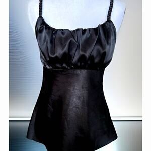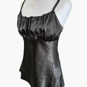 VTG A. Byer Cami Top Black Satin Ruched Camisole Tank 90s Club wear USA Y2K Med