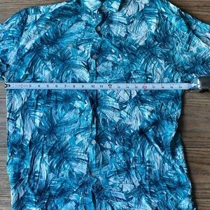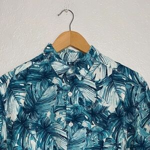 Cubavera Tropical Palm Print Textured Button Down Short Sleeve Green White Shirt
