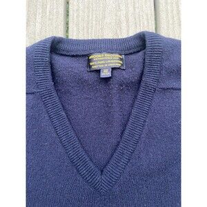 Brooks Brothers Sweater Mens 42 Navy Blue V-Neck 100% Lambswool Made in England