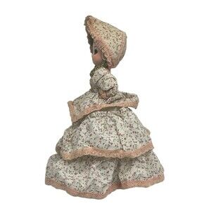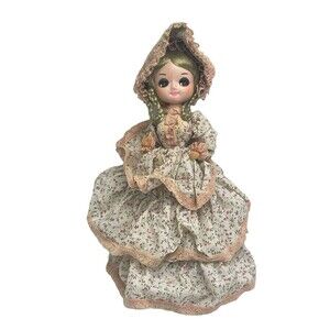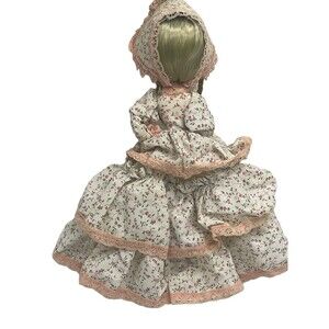 This vintage BIG EYES BRADLEY DOLL LISA is a charming addition to any collection. With her multicolor flower dress and matching bonnet, this 11" tall girl doll is a must-have for fans of Bradley dolls. The doll is made of cardboard and is an original, licensed reproduction from Korea.