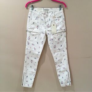 Joie Jeans Women's 27 Park Skinny Denim White Floral Stretch Zip Hems Pocket New