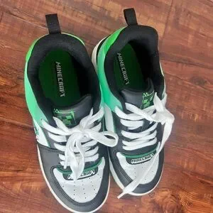 Worn once - excellent condition! Unleash creativity with these Minecraft-themed sneakers. Featuring a striking black and green design, they're perfect for young adventurers. Comfortable and stylish for everyday play.