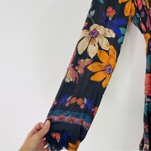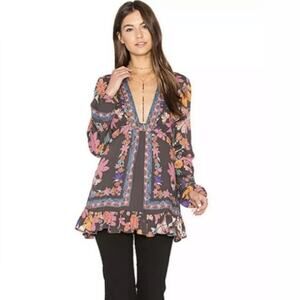 Free People violet hill grey pink floral boho tie ruffle tunic top 6