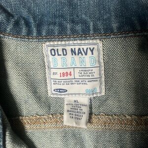 Classic blue denim jacket. Features durable stitching. Ideal for everyday style.