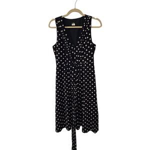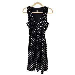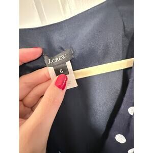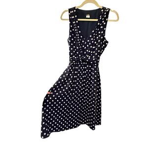 J Crew 6 Elinor Polka Dot Linen Dress $148 Sleeveless Fit&Flare Navy Blue White