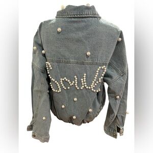 “Soul” Upcycled Pearl Embellished Denim Jacket Sz L