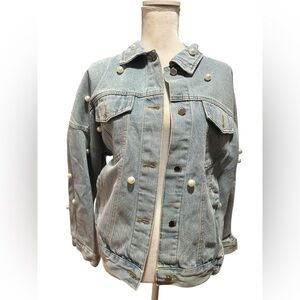 Stylish denim jacket adorned with elegant pearl details. Perfect for adding a chic touch to any outfit.