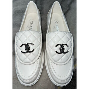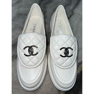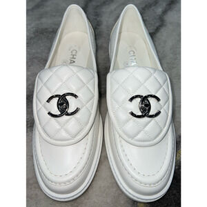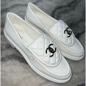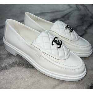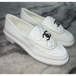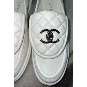 Chanel 22P White Quilted Flap Turnlock CC Logo Mule Slip On Flat Loafer 37