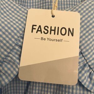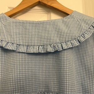 Blue Gingham Babydoll Dress with Ruffled Lapel Collar XL NWT