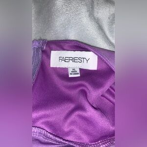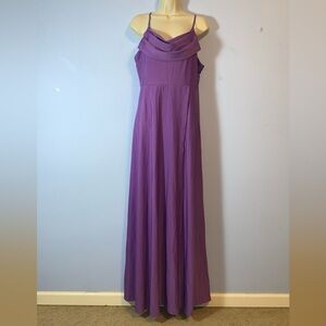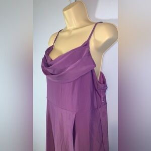 Faeriesty Elegant Purple cowl drape neck spaghetti strap slit Evening Gown XL