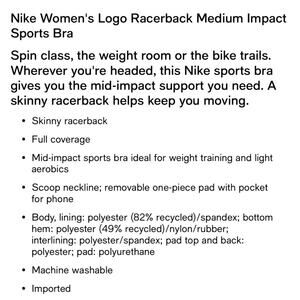 NWT Nike Logo Racerback Medium Support Sports Bra Padded. Blue Dri-Fit Women’s S