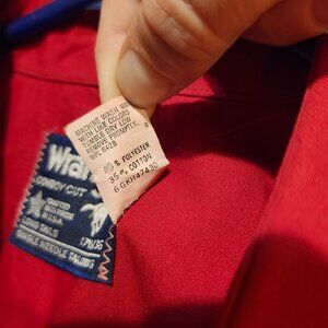 Tag Era: This blue label with the stitched rodeo rider and “Crafted with Pride in U.S.A.” star was most commonly used in the 1980s through the early 1990s, before Wrangler’s production shifted overseas.
