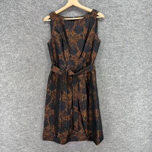 Talbots Dress Women 6 Brown Floral Sheath Midi Zipper Lined Belted Sleeveless