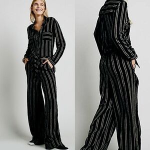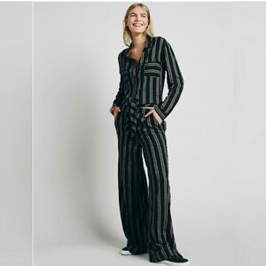 Free People Gray Brown Striped Sensual Wrapped Jumpsuit