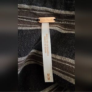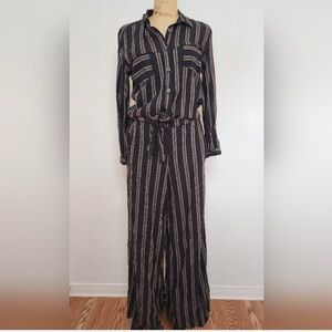 Size M Free People 'Sensual Wrapped' striped jumpsuit in color dark gray/brown combo! Very gently pre-loved, excellent condition! Originally retails $128. Linen/Rayon blend.