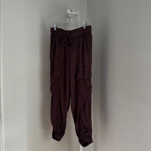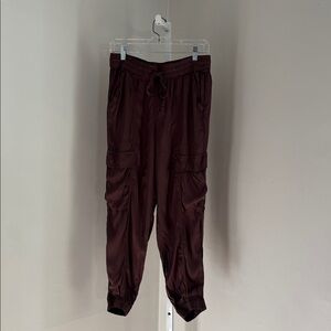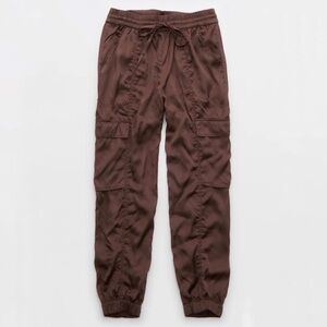 Aerie Brown Silky Satin lightweight Jogger Pants with Cargo Pockets Sz Med