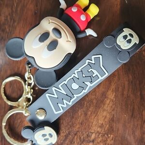 Adorable Mickey Mouse 2.5 inch tall bag charm with black wristlet strap that says " Mickey"