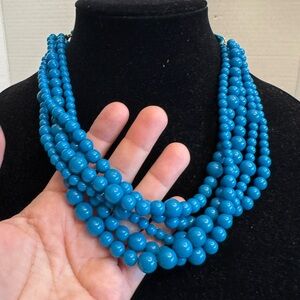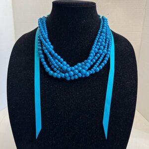 Sugarfix Teal Layered Multi Strand Acrylic Statement Necklace With Ribbon Tie Detail