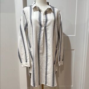 Dylan Clothing Maya Tunic Size L White and Gray Striped Swim Cover-Up