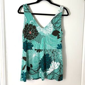 Tommy Bahama L soft double V-neck aqua multi modern floral top.