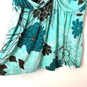 Tommy Bahama L soft double V-neck aqua multi modern floral top