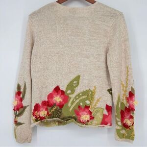 Hummingbird and Flower Button Down Cardigan Sweater Button Front Floral Small