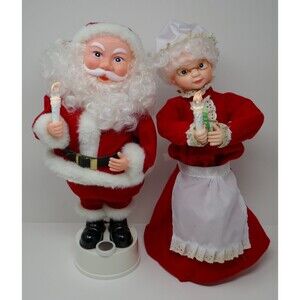 Santa's Best Mr & Mrs Santa Claus Lighted Animated Motionette Figures WORKS